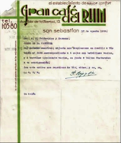 El Gran Café del Rhin de Donostia/San Sebastián abrió sus puertas en 1905 en la Avenida de la Libertad nº 13, en la esquina con la calle Bergara. Lo fundaron Felipe Elorrio y Félix Ibarguren y luego lo traspasaron a J. Beovide y Cia. En 1911 era su propietario Florentino Rojo y en 1941 los hermanos Manuel y Javier Beldarrain. Cerró en 1952. Durante algunos años compitió con el Café de la Marina del Boulevard (durante unos años Café Kutz) como el «Café de la belle epoque «en la ciudad.