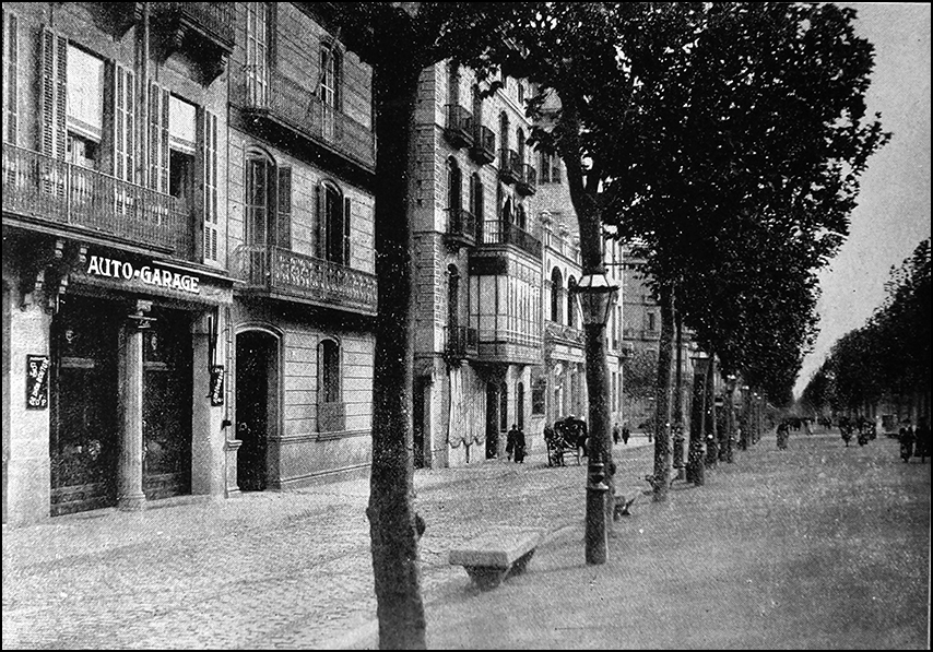 La casa Pladellorens en el Paseo de Gracia (la que tiene un carro enfrente). Barcelona Artística e Industrial, 1917.