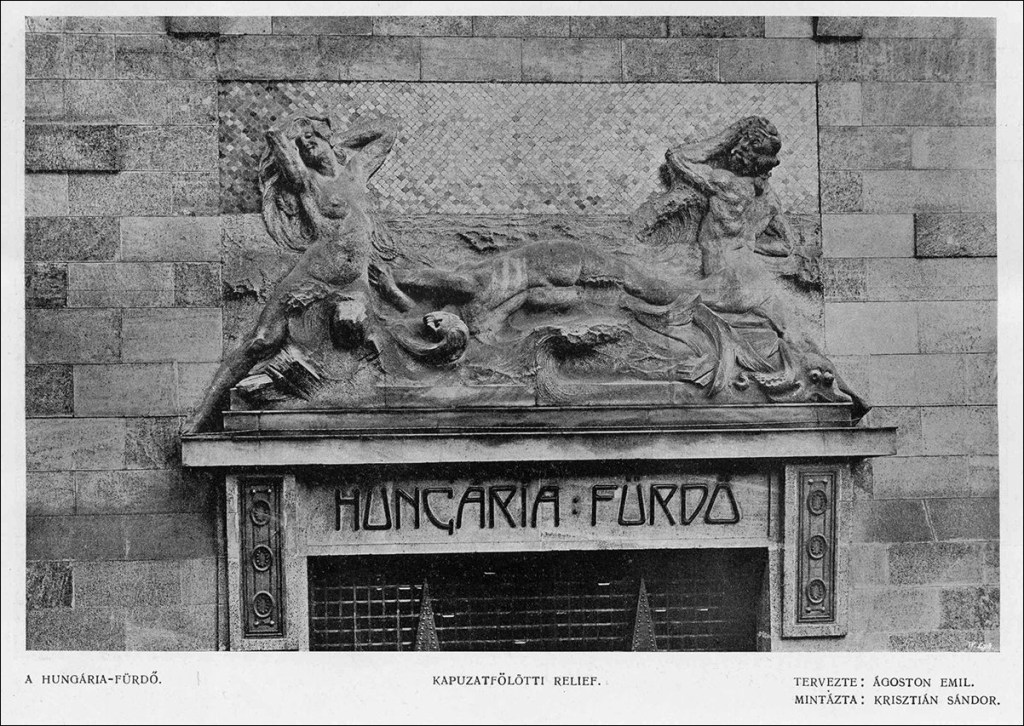 Emil Ágoston (1876-1921) era un importante arquitecto húngaro a principios del siglo XX y que participaba en alguna medida del espíritu Secession (Magyar Szecesszió), cuando Hungría era parte del Imperio Austro-húngaro. Entre sus obras figura la reforma de unos baños muy destacados de Budapest, los baños Hungaria (Hungaria Fürdö, en húngaro) en 44 Dohány Utca. Lo que queda de estos antiguos baños es hoy en día el Hotel Continental de Budapest, con una reconstrucción parcial de los vestigios modernistas, tras la reforma de Ágoston. En 2008 se demolieron las ruinas del edificio y se renovó tal como era en el original la puerta de entrada, con el grupo escultórico de Krisztián Sándor, y el vestíbulo interior abovedado. El edificio está actualmente protegido. Pueden encontrarse algunas imágenes antiguas y modernas en la internet, en particular en Wikimedia.