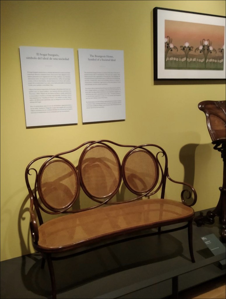 En aquest blog vam fer una entrada sobre el sofà de fusta corbada de Germans Thonet (nº 22 del catàleg) present en el Museu del Disseny de Barcelona i ara no anem a repetir lo que vam escriure, centrat en les característiques i història de la peça. Aquesta entrada son solament unes reflexions sobre les formes de la fusta corbada en el context del modernisme amb motiu de la presència del sofà nº 22 de Germans Thonet en l’exposició sobre «Modernisme, cap a la cultura del disseny», oberta al public des de novembre de 2020 al Museu del Disseny de Barcelona. L’exposició fa un nexe entre el historicisme, el modernisme i el noucentisme fins a provocar una auto-reflexió sobre la modernitat i la musealització en si mateixa. No és l’objectiu d’aquesta entrada comentar el treballat catàleg d’aquesta exposició amb estudis introductoris de Mireia Freixa i Pilar Vélez, comissàries de la mostra.