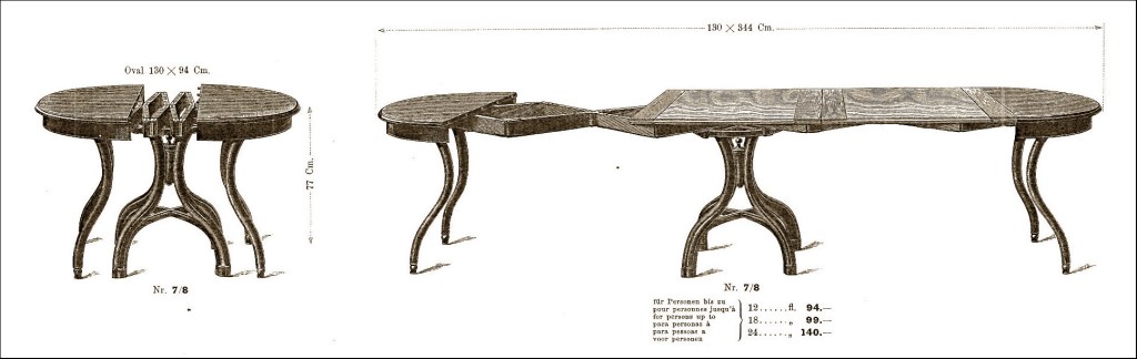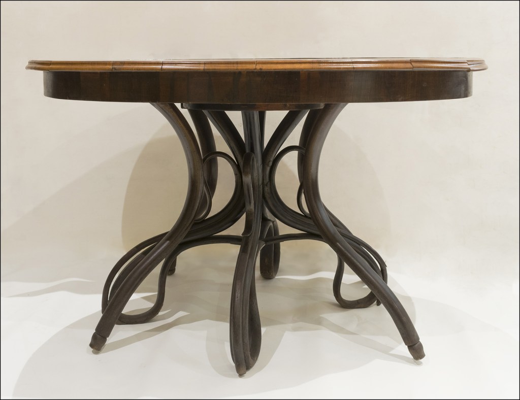 Una pieza deliciosa de mueble curvado de la Casa Museo es la mesa de juego de Hermanos Thonet, que es como la mesa de lectura del catálogo de este fabricante, aparecida en 1878, pero tiene un sobre con un diseño para juego que se podía solicitar como una opción. La mesa lleva la primera etiqueta de la firma y, por tanto, fue producida antes de 1883. Una mesa semejante se conserva en el Museo de la Ciudad de Boppard (Alemania), localidad natal de Michael Thonet.