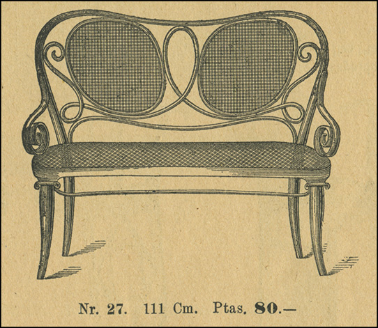 La pregunta, entonces, siguiendo estos argumentos, sería: si la espiral empaqueta y la hélice agarra, ¿Qué hace el lazo?. Desde luego no nos referimos a qué puede hacer el lazo en la naturaleza, sino a qué significado podría tener en el campo del mueble de madera curvada, o dicho de otro modo, estaríamos más en el arte que en la ciencia. Hay que tener en cuenta que estos muebles, al igual que la rejilla de la que están hechos los asientos y respaldos -quizá se podría aplicar a la rejilla la idea, también de Wagensberg, de que «el hexágono pavimenta»- son estructuras transparentes y ligeras en los que el aire penetra. Podríamos entonces decir, tentativamente, que el lazo, en el mueble de madera curvada, captura el aire.