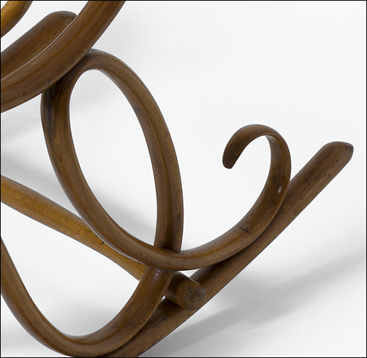 La mecedora número 11 de Hermanos Thonet es una muestra de la versatilidad de esta forma y una de mis preferidas, particularmente por la fuerza simbólica del «lazo infinito» y la rejilla continua entre el respaldo y el asiento.
