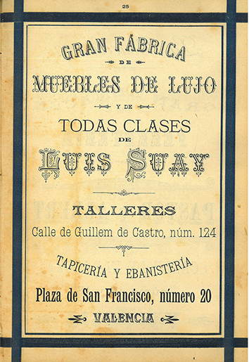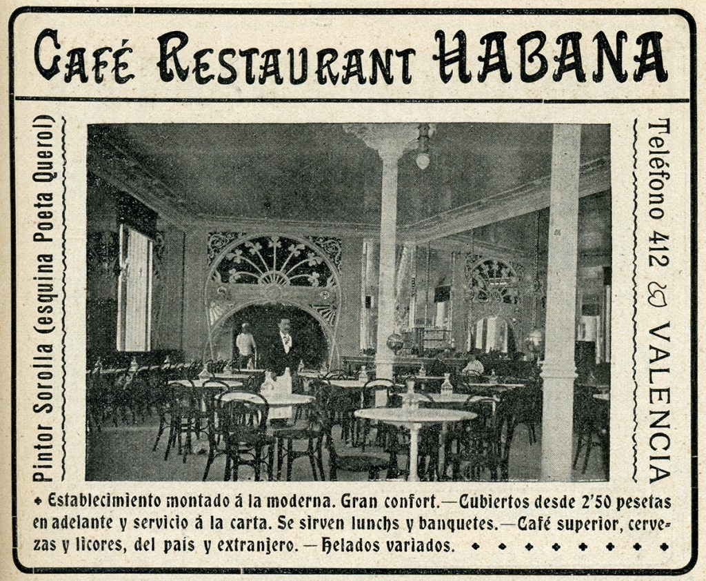 Luis Suay Bonora (1846-1917), que era republicano, de Burjassot, era un gran empresario valenciano del mueble en general y del curvado en particular. Su curvado era, en términos generales, de un estilo más moderno que el de Ventura Feliu, que era, por así decir, más clásico, en la línea de Hermanos Thonet. En cambio Suay estaba atento a los muebles de la otra empresa importante en Viena como era la casa Jacob & Josef Kohn que trabajaba con arquitectos y artistas de la Secession vienesa. Es normal que en Valencia y en el resto de España muchos cafés fueran amueblados con piezas de Suay y la lista sería muy larga. De vez en cuando hacemos referencia a sus establecimientos -queremos decir, establecimientos dotados con sus sillas- en otros lugares. Hoy nos vamos a detener en dos locales: el Restaurante-Café Habana y el café de la Casa de la democracia, dos cafés de interés en la Valencia del primer tercio del Siglo XX.