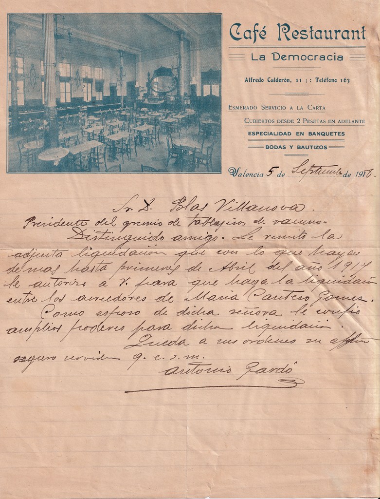 Carta comercial del Café, circulada en 1918 (archivo del autor).