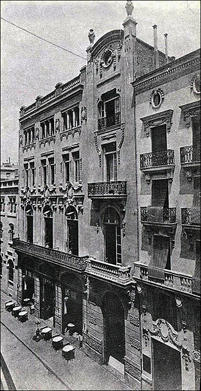 Construido el edificio sobre solares de José Suay, situados en la calle de Correos resultado de la demolición del antiguo Barrio de Pescadores, empleó Mora en él ornamentación neobarroca de influencia francesa, que luego él mismo fundió, con otros estilos en otras obras, con elementos barrocos inspirados en el tradicional barroco valenciano. Esta mezcolanza decorativa dará lugar, en su trayectoria arquitectónica, a una fase, que se denominó «neobarroco local», muy característica e interesante.» (Ramón Martín Pérez en el blog «Cosas de Historia y arte», 15 de noviembre de 2017).