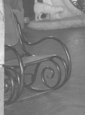 Els balancins de la sala de lectura. Fischel, efectivament, també feia bons balancins de fusta corbada -competint amb Thonet i Kohn-, una de les peces de mobiliari més estimades a Espanya. Els balancins que s’aprecien en les fotografies d’època de la sala de conversació eren el seu número 1 B, el model amb espirals ben fetes als laterals i que pot identificar-se -augmentant la imatge- per detalls constructius específics com el gruix de la barra en el punt en què sustenta el seient, l’alçada de la barra del reposabraços (s’eleven una miqueta abans de descendir fins ben avall) i el reforç estabilitzador que se situa entre les espirals, només utilitzat per Fischel amb la forma que s’aprecia en la fotografia.