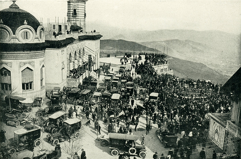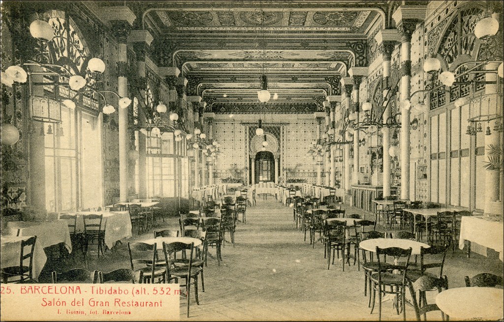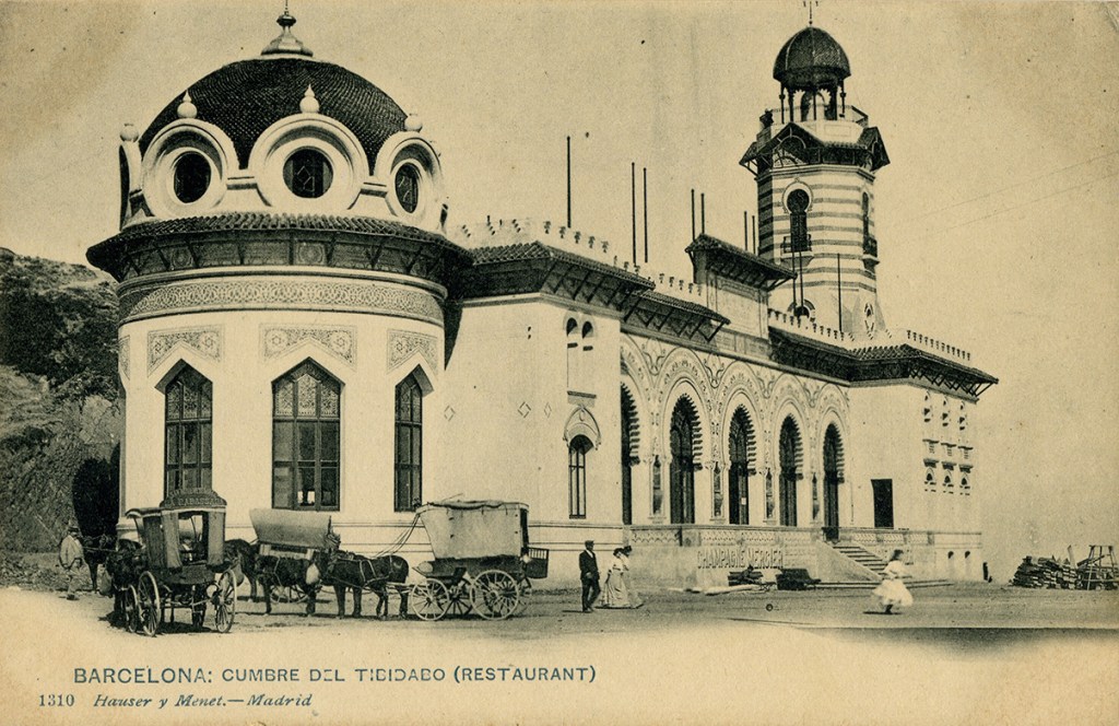 El Gran Café-Restaurante del Tibidabo era uno de los edificios que tenía más postales en circulación de toda Barcelona. Era modernista neo-árabe y en la misma publicidad se indicaba «salón estilo árabe», señalándose además que estaba a 540 metros sobre el nivel del mar.