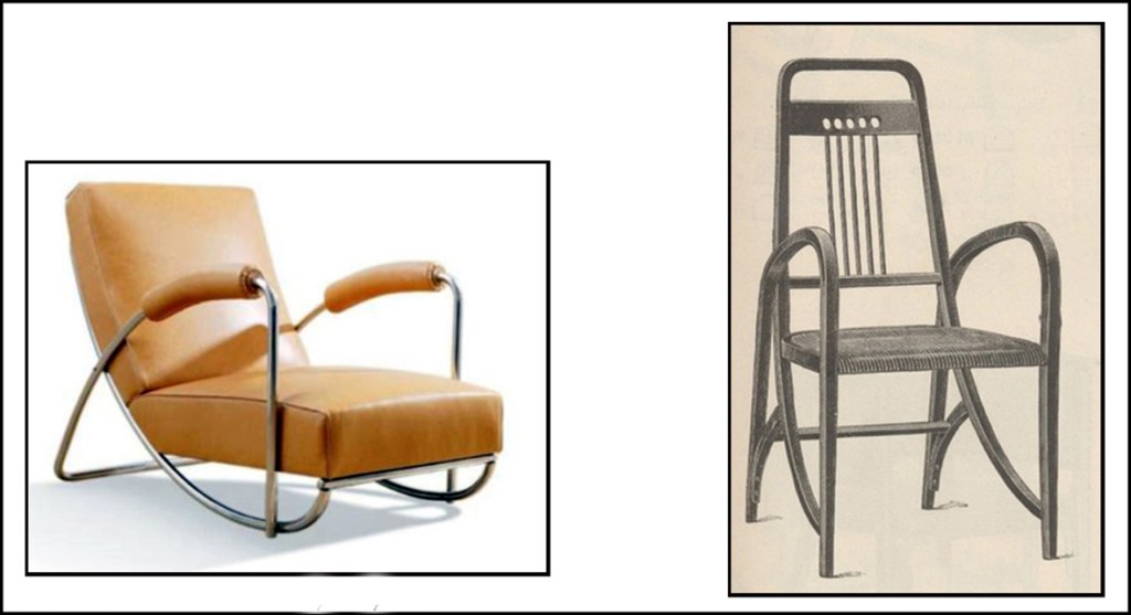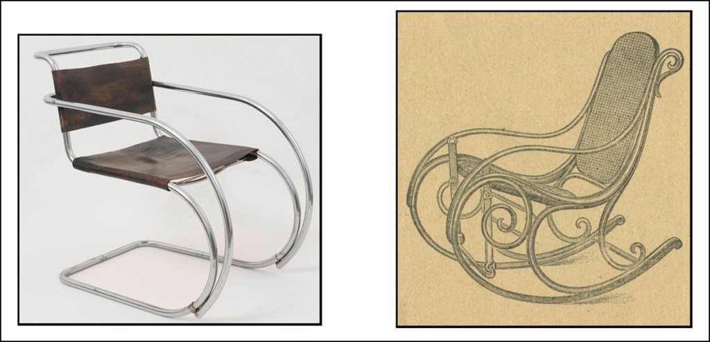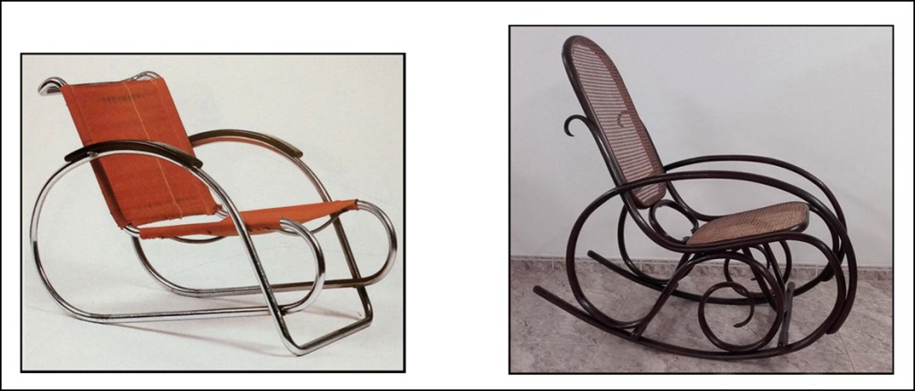 Este principio constructivo y estético tendrá una proyección manifiesta en el mueble de acero tubular de los años veinte y treinta, en lo que podríamos llamar «mecedoras inmovilizadas» en las que a menudo el movimiento decidido de la mecedora ha sido sustituido por el suave efecto cantilever en un sillón. Los arquitectos del Movimiento Moderno conocían perfectamente los progresos de las industrias del mueble curvado, en ocasiones colaborando en el diseño de nuevos modelos y plasmando el principio de la continuidad lineal en modelos fabricados con el lenguaje tradicional del mueble curvado pero ahora con nuevos materiales, como el acero. En este sentido, ciertamente, el mueble de madera curvada fue un referente para el mueble de acero tubular.