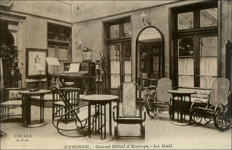 Algunos de los modelos de laterales continuos (principio de la continuidad lineal) diseñados por Gustav Siegel para Kohn, en vez de sección de la barra circular, la tienen rectangular, como es el caso de la mecedora nº 822. Además, el diseño del respaldo acentúa su carácter geométrico-Secession y en este mismo sentido es destacable la forma triangular de la barra estabilizadora. Creemos que el modelo estaba pensado, posiblemente, para tapizar por razones de comodidad evidentes, pero en los catálogos, la misma mecedora tapizada o con rejilla llevaba una numeración diferente (nº 835). El asiento en vez de rejilla lleva chapa con una ondulación para la mejor adaptación de las piernas. La versión tapizada tenía representación en el vienés Hall del Hotel d’Europe de Avignon, sobre el que hicimos una entrada en el blog debido a la abundancia de mueble vienés que presentaba.