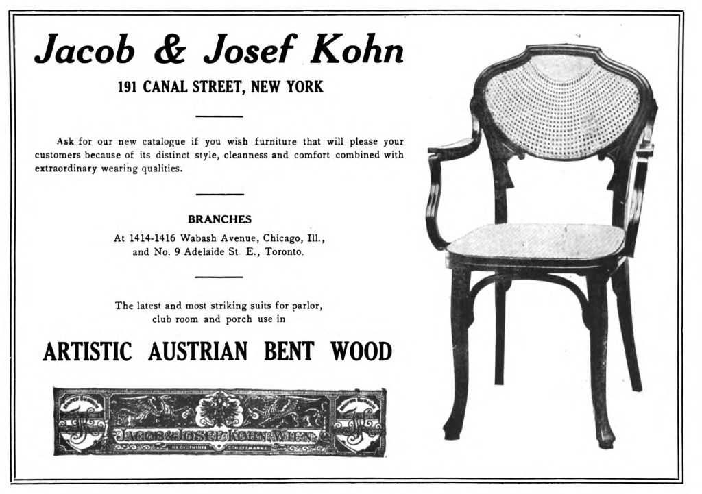 Curiosamente en la postal de restaurante se observa que las sillas llevan la placa que Grifé y Escoda (Barcelona-Madrid), importadores de «Thonet» (entonces en Checoslovaquia) ponían en sus modelos. En la década de 1930 la firma «Kohn» fue desapareciendo siendo sustituida en Europa por la marca «Thonet-Mundus», bajo los mandos del empresario Leopold Pilzer.