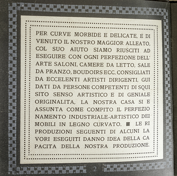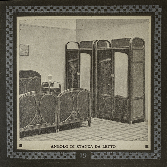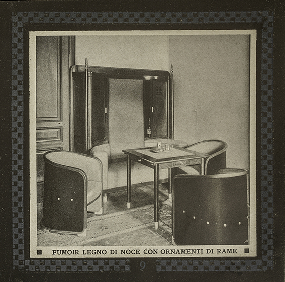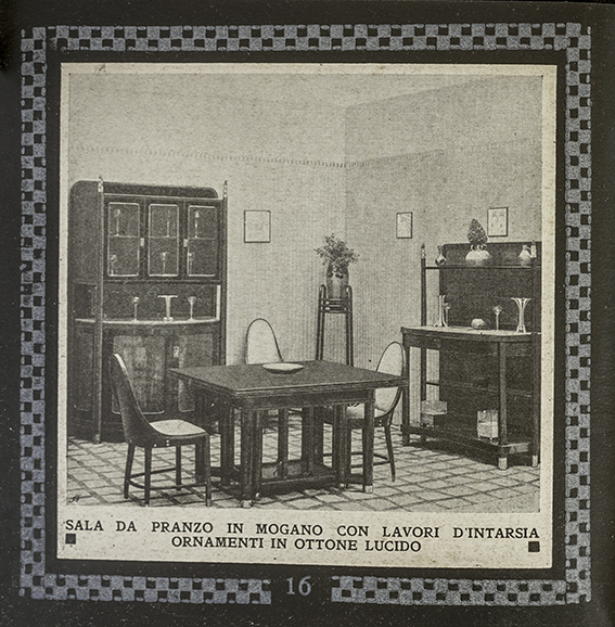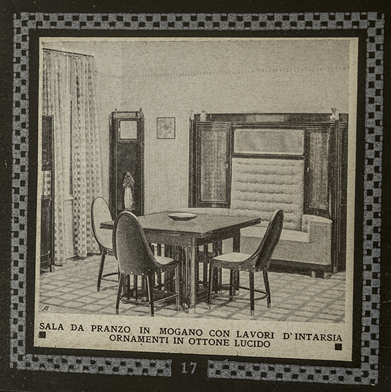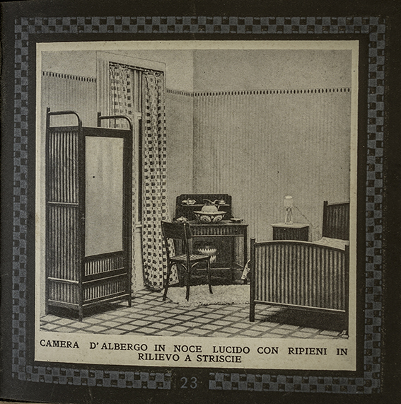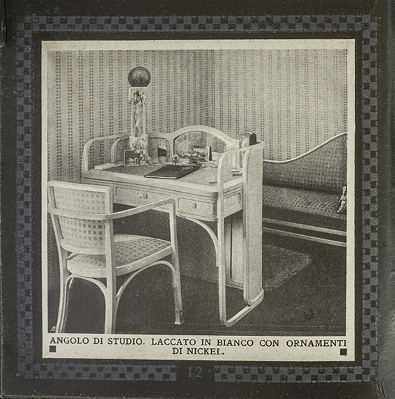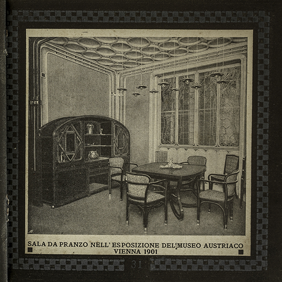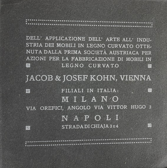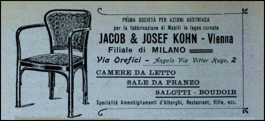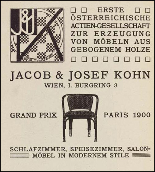¿No se anunciaba Kohn en los catálogos de las Exposiciones de la Secession vienesa como productor y vendedor de interiores completos en madera curvada de estilo moderno, indicando expresamente «comedores, dormitorios y salones» y mencionando la dirección de Burgring 3? Con semejante publicidad Kohn debía tener un buen Showroom en su tienda que era el establecimiento principal. En un anuncio de Kohn de la Guía oficial de la Exposición universal de Milán de 1906 puede leerse también anunciado «Camere da letto, Sale da pranzo, Salotti-boudoir».