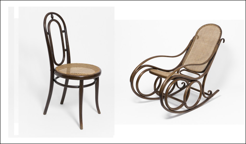 Dentro de la extensa colección de mueble de Viena del Museo Nacional de Artes Decorativas (Madrid) dedicamos esta entrada del blog a dos muebles clásicos de Hermanos Thonet: la silla nº 33 y la mecedora nº 4, que conviven en franca armonía.
