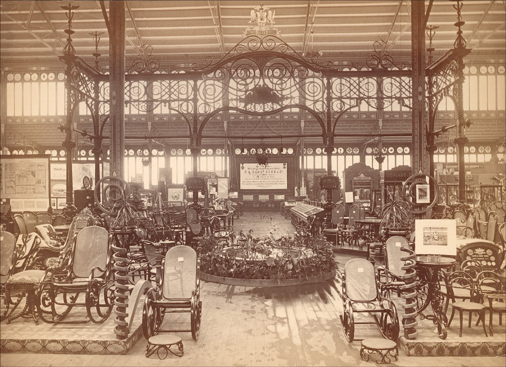 La conquista del mercado americano, particularmente el Estadounidense, por parte de Kohn comenzó en una etapa temprana de su existencia, en 1876 con la Centennial Exhibition -Exposición universal- de Filadelfia. Obtuvo un Gran premio en competición con Thonet y junto a los muebles que exhibía, casi todos copias de los de Hermanos Thonet, levantó parcialmente una estructura de madera curvada que tendría su perfeccionamiento total en la Exposición Universal de París de 1878. Por razones logísticas en Filadelfia no pudo levantar la estructura completa del Cottage de madera curvada de modo que sólo se aprecian tres lados y no tiene cubierta.