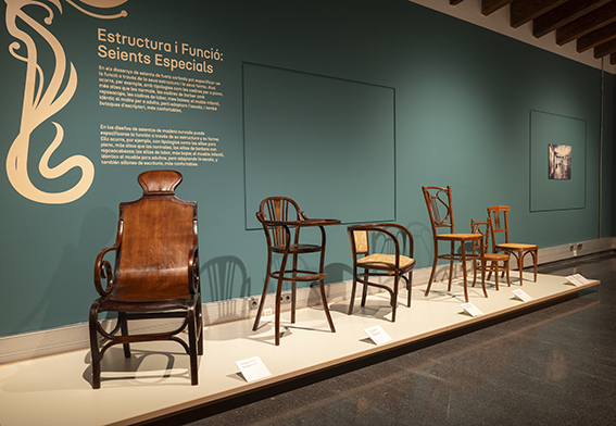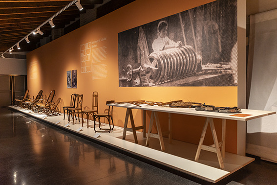 L’exposició s’articula a partir de dos grans eixos, la fàbrica i la llar, que serveixen per a posar en valor la importància de la dona tant en el seu paper fonamental a les fàbriques de moble corbat com en la modernització de l’hàbitat.