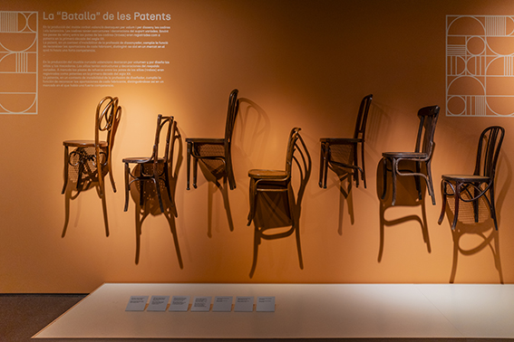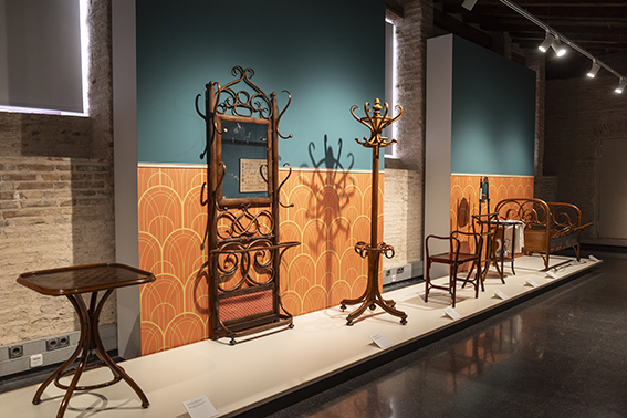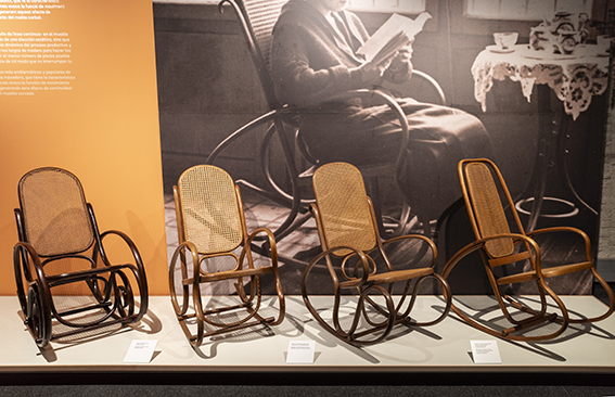 Les peces de l’exposició són fabricades en sèrie a València generalment entre 1880 i 1936. Les reixetes de cadires i balancins estan fetes a mà, sent originals o restaurades per l’especialista Mariona Velasco, de Barcelona.