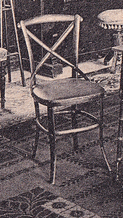 En la sala de visitas de este colegio, (Deusto, Bilbao) establecido en 1867, se encontraban dos ejemplares del modelo nº 91 de Hermanos Thonet, según se muestra en una tarjeta postal. Esta silla apareció en el catálogo de 1891 y se la llama “lattenstuhl” (en alemán), – “silla de listones”, en español-, por estar hechas las piezas principales a base de listones planos, en vez de las típicas barras de sección redonda u ovalada. Se distingue por la característica aspa del respaldo que, unida al asiento en sus terminaciones inferiores, da más solidez a la pieza. El diseño, bastante original, suele atribuirse a uno de los Hijos de Michael Thonet, August Thonet (1829-1910). [BANGERT, Albrecht; ELLENBERG, Peter; Thonet Möbel. Bugholz-Klassiker von 1830-1930, München: Wilhelm Heyne Verlag, 1997, p. 46. Así se registra, por ejemplo, en la colección del Vitra Design Museum: https://collectiononline.design-museum.de/#/de/person/6745?_k=v2a3tp (visitada el 10 de marzo de 2025).] Se encuentra un ejemplar de silla nº 91 en la colección de mueble de Viena del Museo Nacional de Artes Decorativas (Madrid). Actualmente es todavía un diseño usual en el mercado del mobiliario, pero que no presenta las características estructurales señaladas de estar acabado con listones planos y no suele estar fabricado con la técnica de la madera curvada.
