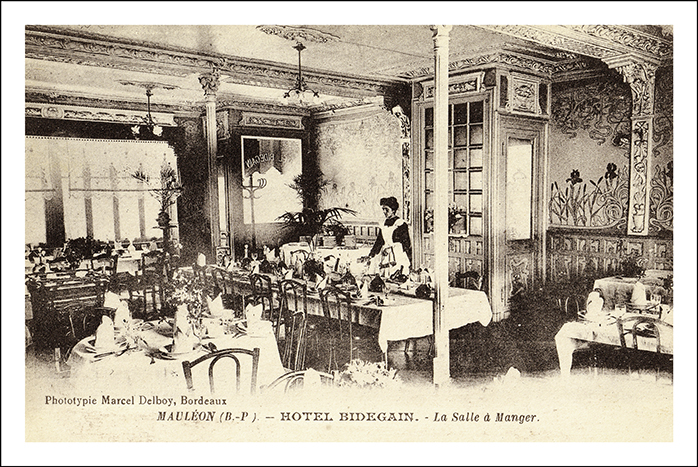 El Hotel estaba instalado en los números 13-15 de la Rue de la Navarre de Maule, en el País Vasco-francés. Se trata de un antiguo y modesto Hotel o Fonda que creo todavía está en funcionamiento. En su comedor, decorado en estilo modernista, se encontraban en su día sillas nº 56 de Hermanos Thonet, un modelo sencillo y económico para establecimientos públicos. Esta silla, junto a un sillón y un sofá, apareció por primera vez en el catálogo de Hermanos Thonet de 1885. (Cfr. OTTILLINGER, Eva B., (Hg.), Gebrüder Thonet. Möbel aus gebogenem Holz, Wien: Böhlau, 2003, anexo, p. 127).