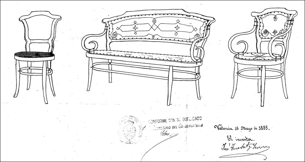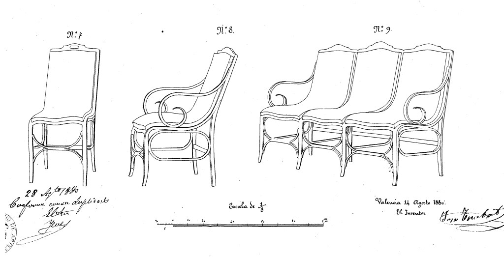 El Sr. Trobat comprendió la importancia que podía alcanzar en Valencia una industria de esa naturaleza, y dedicó sus esfuerzos al estudio de las innumerables aplicaciones que se podían dar á la madera con la base de las hechuras curvas, y atendiendo á la solidez de los trabajos de madera doblada en sus múltiples formas. El Sr. Trobat no ha sido un mero copiador de los productos de Viena. Ha ideado nuevas combinaciones, resultando así objetos de elegantes formas, lijeros de peso, sólidos en cuanto cabe imaginar y al alcance de todas las posiciones.