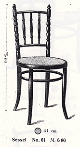 El Museo Nacional de Artes Decorativas, con sede en Madrid, tiene una nutrida colección de sillas y mecedoras vienesas. En esta ocasión veremos dos piezas en negro, muy típicas del fabricante "Hijos de D. G. Fischel". La silla número 39, presente en el catálogo de 1889, tiene la pieza de las patas traseras y el … Sigue leyendo Muebles de Fischel en la colección del Museo Nacional de Artes Decorativas: silla nº 39 y mecedora nº 5 «para señoritas».
