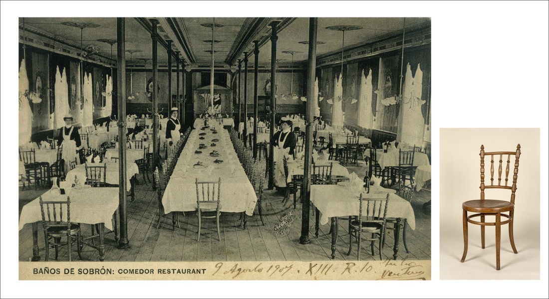En Sobron, (Álava-Araba) haciendo uso de sus manantiales, se construyó a mediados del siglo XIX un balneario que se mantuvo en activo hasta 1936. Durante la Guerra Civil se utilizó como hospital militar. Estas instalaciones contaban con servicios de casino, peluquería, oficina telegráfica, salón de baile, etc. En su comedor había -históricamente- sin ninguna duda sillas nº … Sigue leyendo El Hotel del Balneario de Sobron: sillas de Fischel.